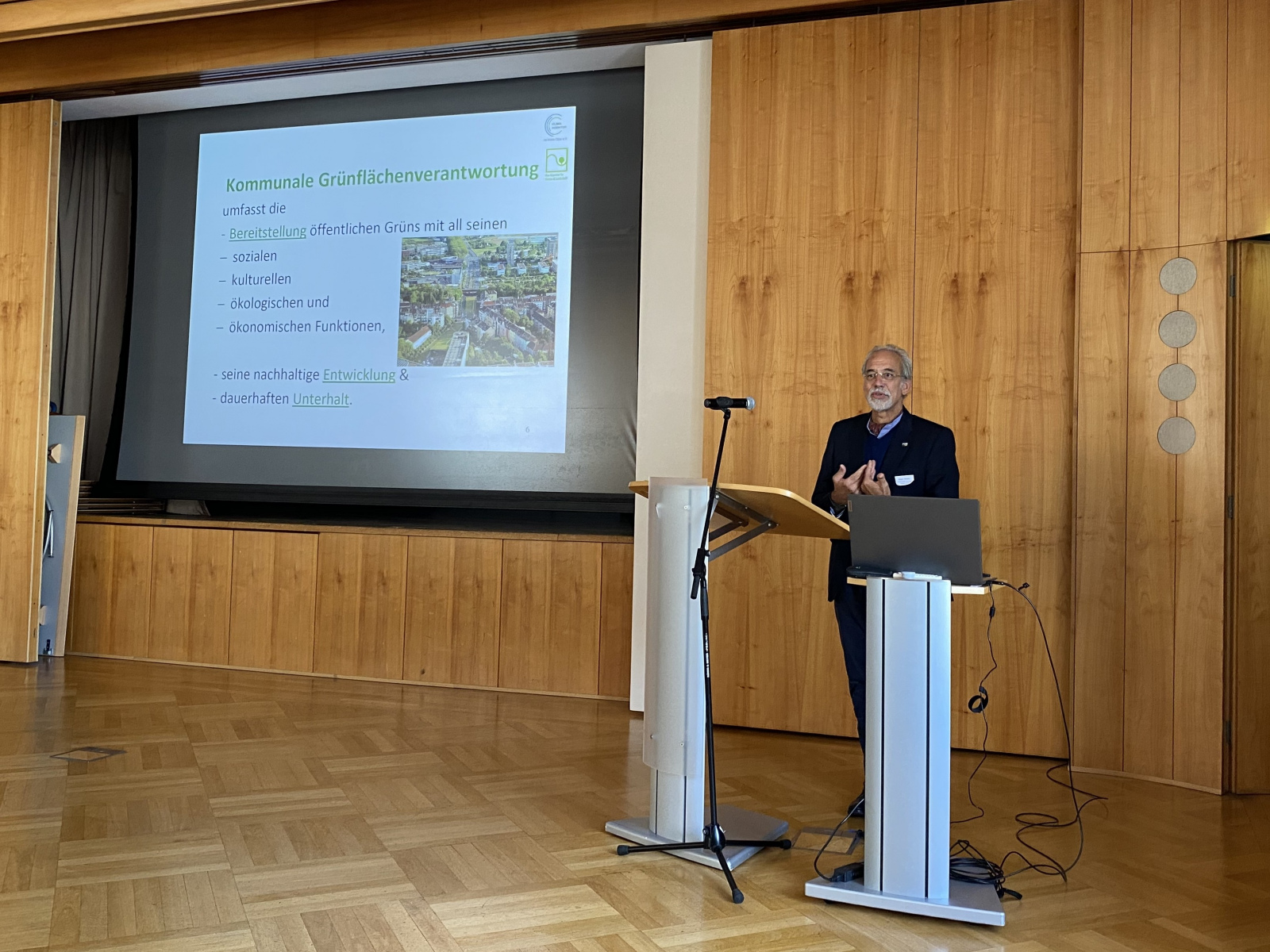 Peter Menke von NED.WORK war schon im Vorfeld bei den Planungen involviert und moderierte die Veranstaltung. Ziel war es, die für Klimaschutz und Klimaanpassung Verantwortlichen vor Ort zu informieren und zu vernetzen, und so die Zusammenarbeit zwischen verschiedenen Verwaltungseinheiten einerseits und die Einbindung der grünen Branche andererseits zu erleichtern.