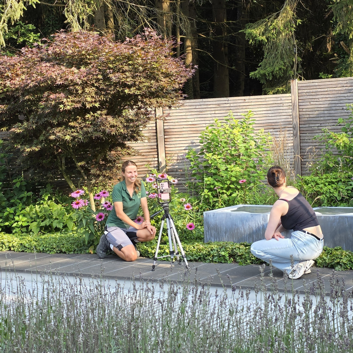 Nun geht’s an die Postproduktion, damit die Serie auf den Instagram- und Facebook-Seiten unseres Kunden für Aufmerksamkeit sorgt und die Themen des GaLaBaus viral verbreitet. Das Wetter war bei unseren Produktionstagen jedenfalls prima, die Gärten attraktiv, die Themen bestens vorbereitet, alle Beteiligten hochmotiviert, top-sympathisch und bestens gelaunt – ein großer Dank geht hier vor allem an die Landschaftsgärtnerin Marie und den Landschaftsgärtner Peter, die stellvertretend für ihre Branche als kreative Expert*innen vor der Kamera charmant und kompetent viele Gartenthemen vorstellen.